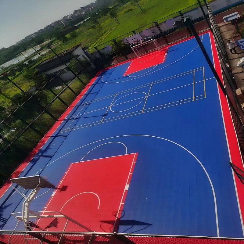 篮球场日常使用中,地面需承受球员快速移动、球鞋摩擦、篮球撞击等高频损耗,同时要应对汗水、水渍可能带来的打滑风险。运动地板表面通常采用特殊纹理设计,能增强球鞋与地面的摩擦力,即使球员在出汗或地面轻微潮湿的情况下,也能减少打滑隐患,避免因脚下失控影响比赛节奏;此外,运动地板的表层材质具备出色的耐磨性能,可抵抗长期摩擦造成的划痕、磨损,长期使用后仍能保持平整外观与性能稳定,降低球场的维护频率与成本。多少