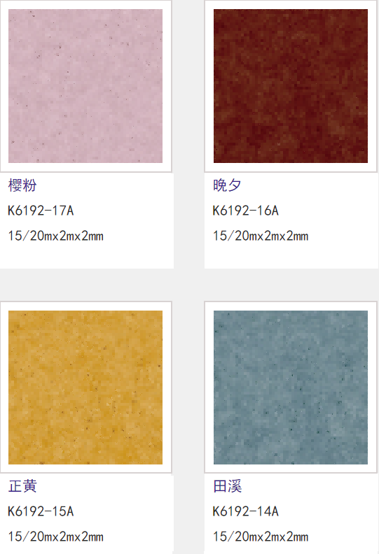 规格:厚度(mm):2.0 耐磨层(mm):0.3 宽/长(m):2.0/15或20 运营花色:24种花色